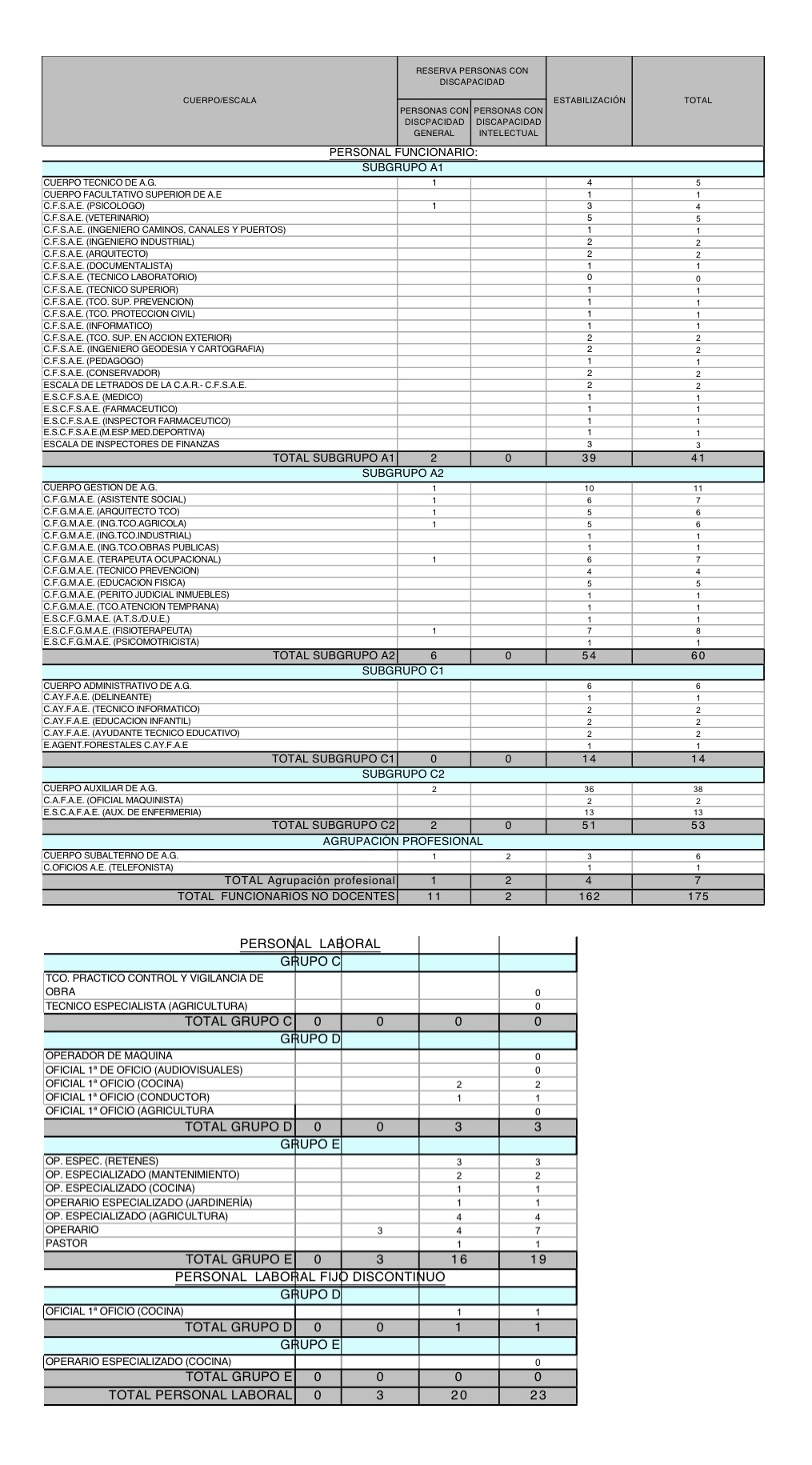 Por su parte, la oferta de estabilización incluye 198 plazas, 175 para personal funcionario y 23 para laboral.