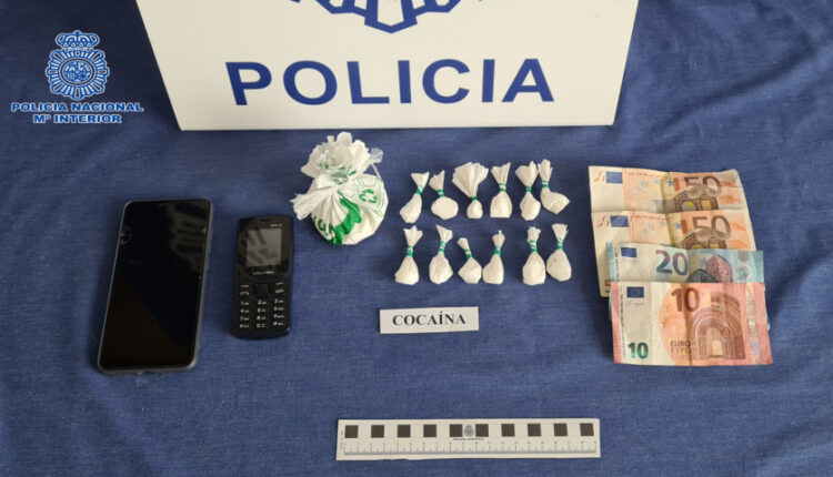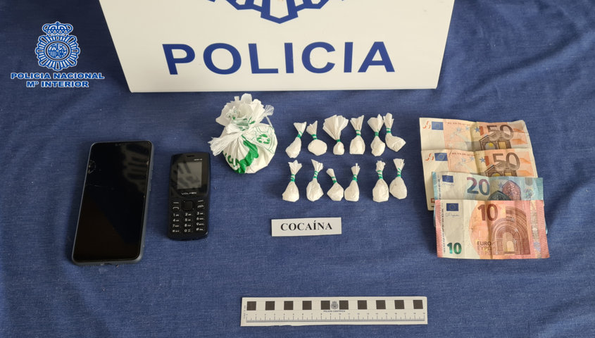 Posteriormente los agentes le realizaron un cacheo superficial, incautándole en el bolsillo del pantalón el resto de la droga que portaba: una bolsa de plástico con cocaína en su interior con un peso de 42 gramos, anotaciones manuscritas con nombres y cantidades además de dinero fraccionado y dos teléfonos móviles.