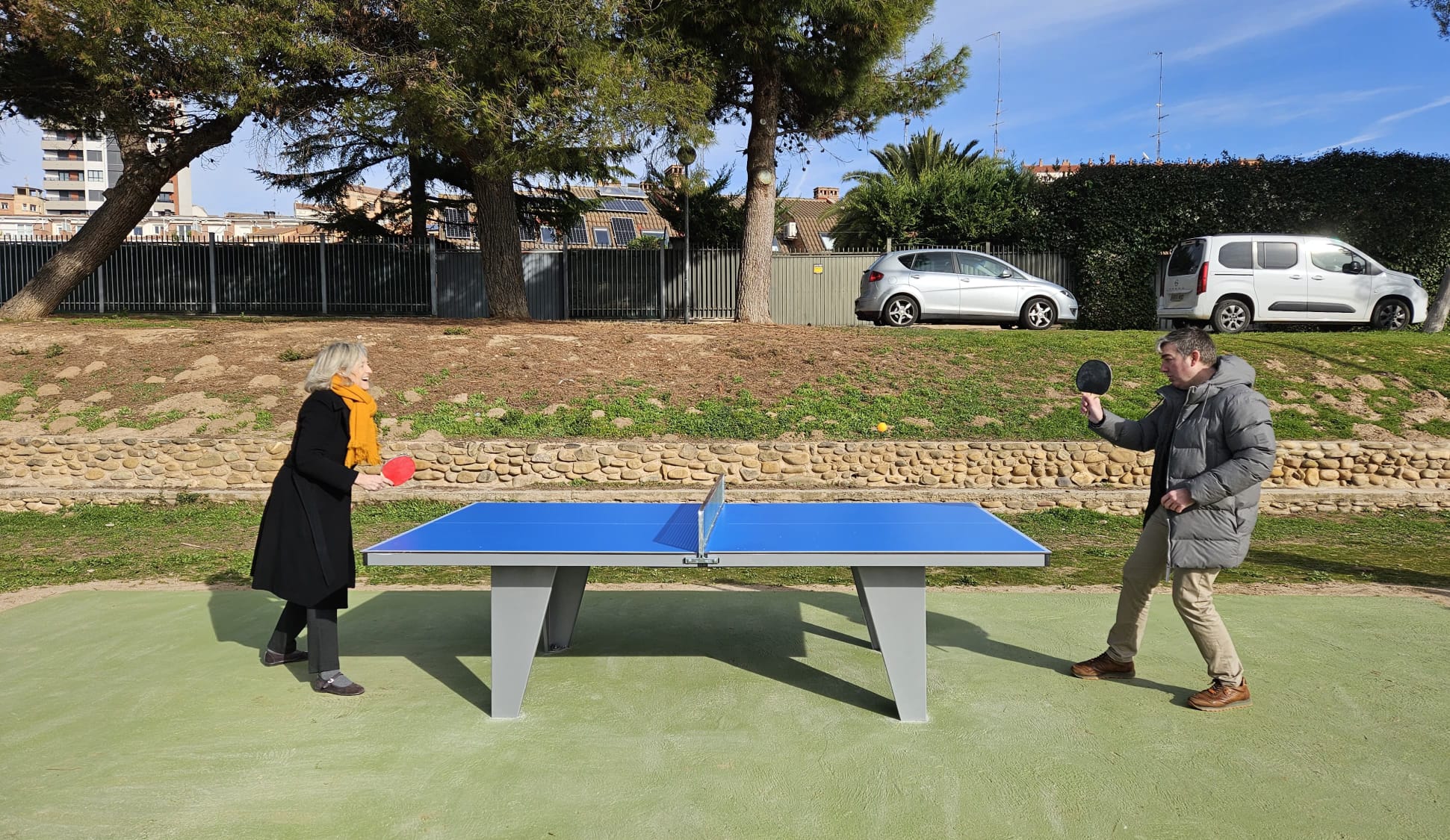 La oferta deportiva municipal también se ha reforzado en el Parque del Cidacos, que incorpora una mesa de ping-pong y una red de voleibol, la primera ubicada en un espacio público de la ciudad.