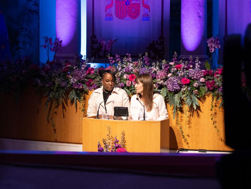 El acto, conducido por la periodista Lourdes Díez, contó con la participación de Rocío Mora, directora ejecutiva de APRAMP, y de Paula, superviviente de trata y actual mediadora social. Ambas compartieron su testimonio y el proceso de recuperación de las mujeres acompañadas por la entidad.