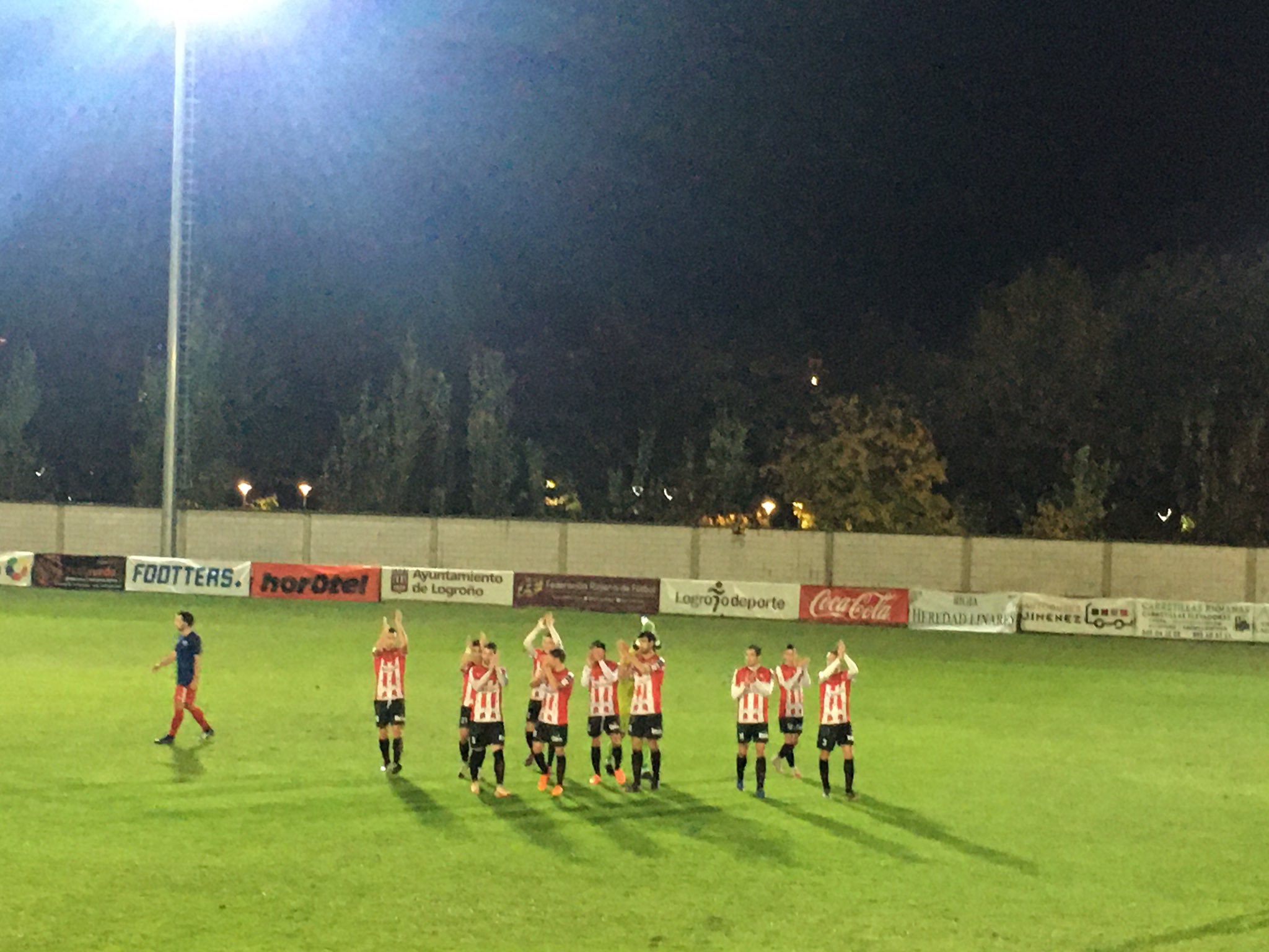 Con la ventaja por partida doble en el marcador, se desbocó el conjunto riojano. Los cambios le sentaron bien y dio una marcha más cuando empezaban a flojear las fuerzas en el bloque navarro. Anotó el tercero en una buena jugada tras centro pero la acción estaba anulada por fuera de juego. Presionaba en campo contrario y no sufrió problemas en defensa hasta el final del encuentro. Llegado el minuto 90 pudo lograr el gol de la honra el bloque navarro pero Jero lo impidió con una magnífica estirada para mantener su portería a cero.