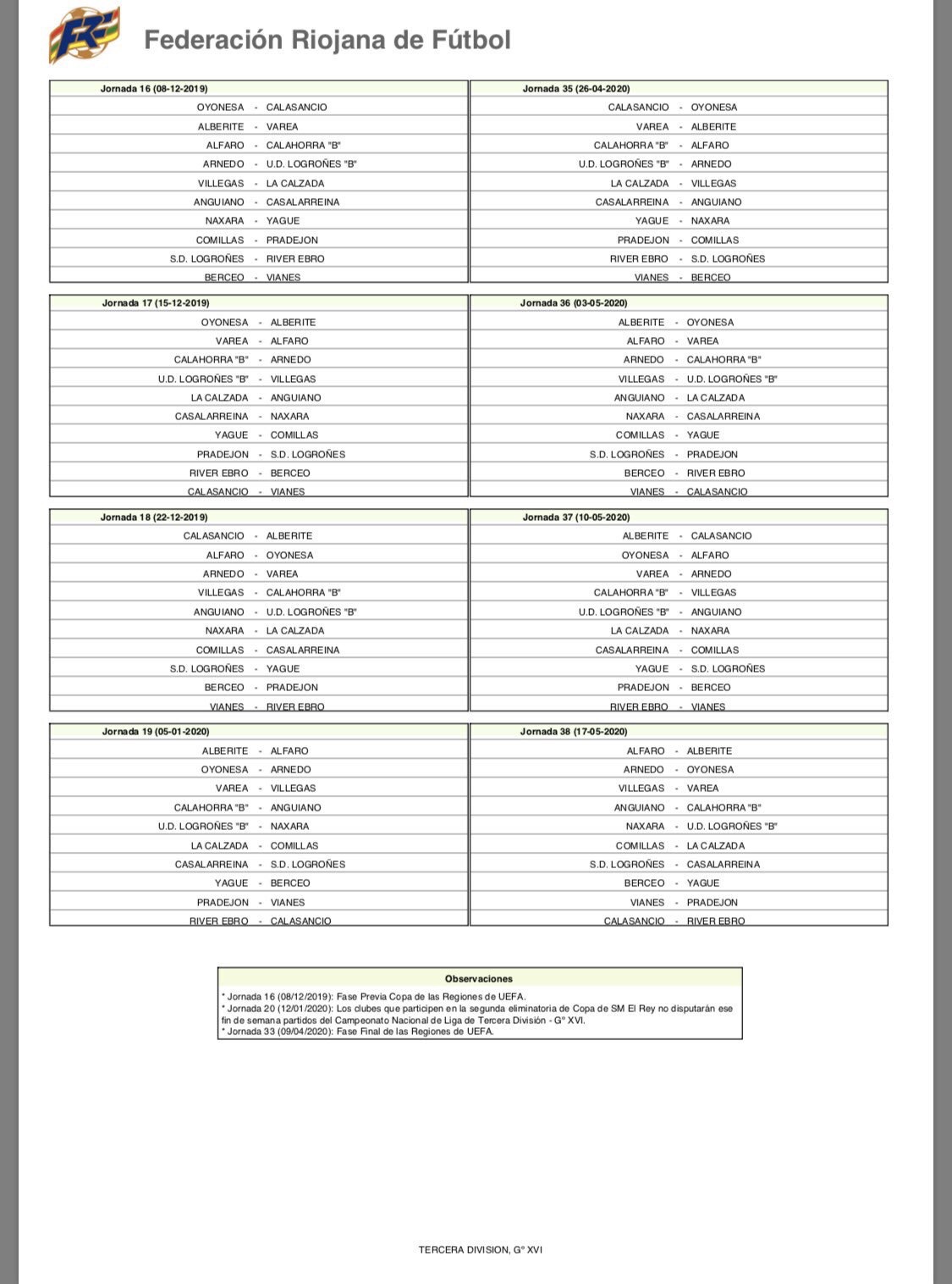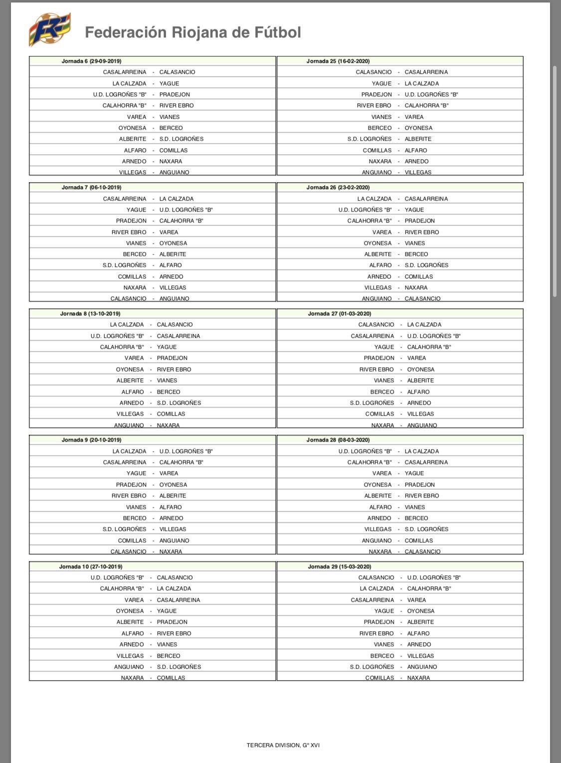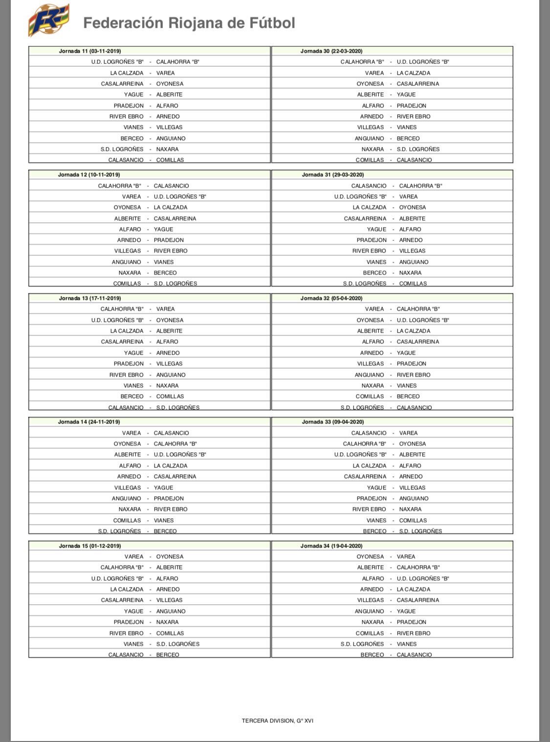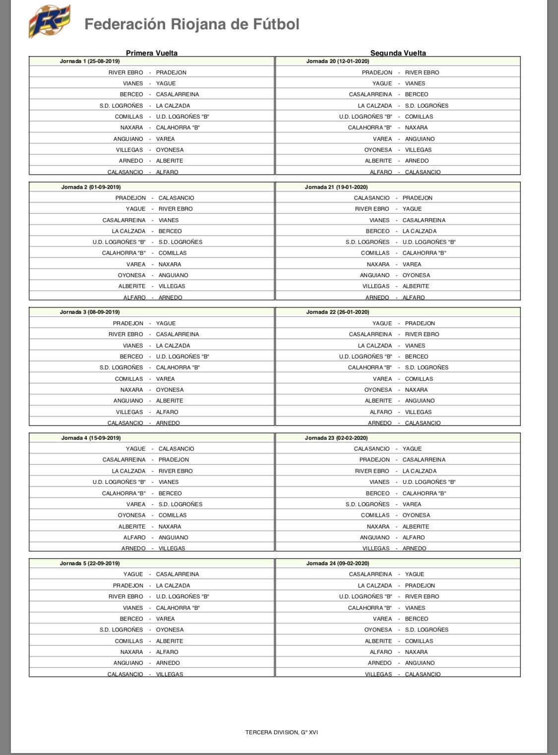 Esta mañana se ha publicado el calendario de la tercera riojana.