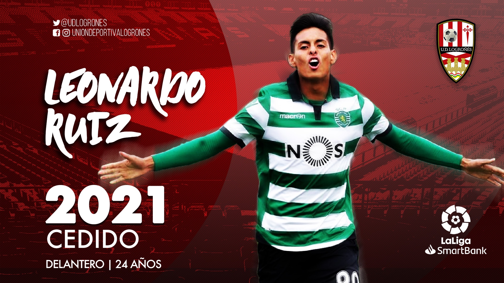 La Unión Deportiva Logroñés está inmersa en la formación de su primer equipo y en este sentido informa del fichaje de un nuevo delantero: Leonardo Acevedo Ruiz (Medellín -Colombia-, 18 de abril de 1996). El joven atacante desembarca en las filas blanquirrojas cedido por el Sporting de Portugal, de la primera división portuguesa, hasta junio de 2021.