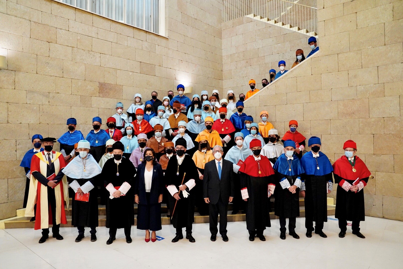 El acto se ha inciciado con el desfile de la comitiva de doctores que hoy de nuevo, tras cerca de veintitrés meses sin hacerlo, se han vuelto a revestir para participar en un acto académico.