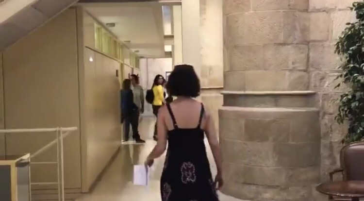 Actualidad Rioja Baja ha podido captar el momento en el que Raquel Romero, tras permanecer encerrada en su despacho hasta el último momento para burlas a sud bases, ha evitado recoger este manifiesto, custodiada y con diversos subterfugios, de las manos de Esme Figueiras. En cualquier caso, el comunicado a llegado a las manos de Romero ya que un Diputado del Partido Popular lo ha cogido y se lo ha entregado.