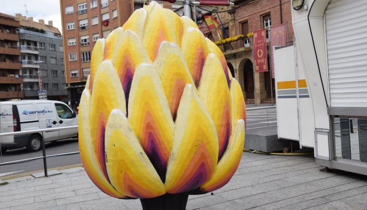 Una alcachofa, una berenjena y un limón gigantes decoran Calahorra con motivo de la vigésima tercera edición de las Jornadas Gastronómicas de la Verdura, que se desarrollarán del 22 de abril al 1 de mayo en nuestra ciudad.