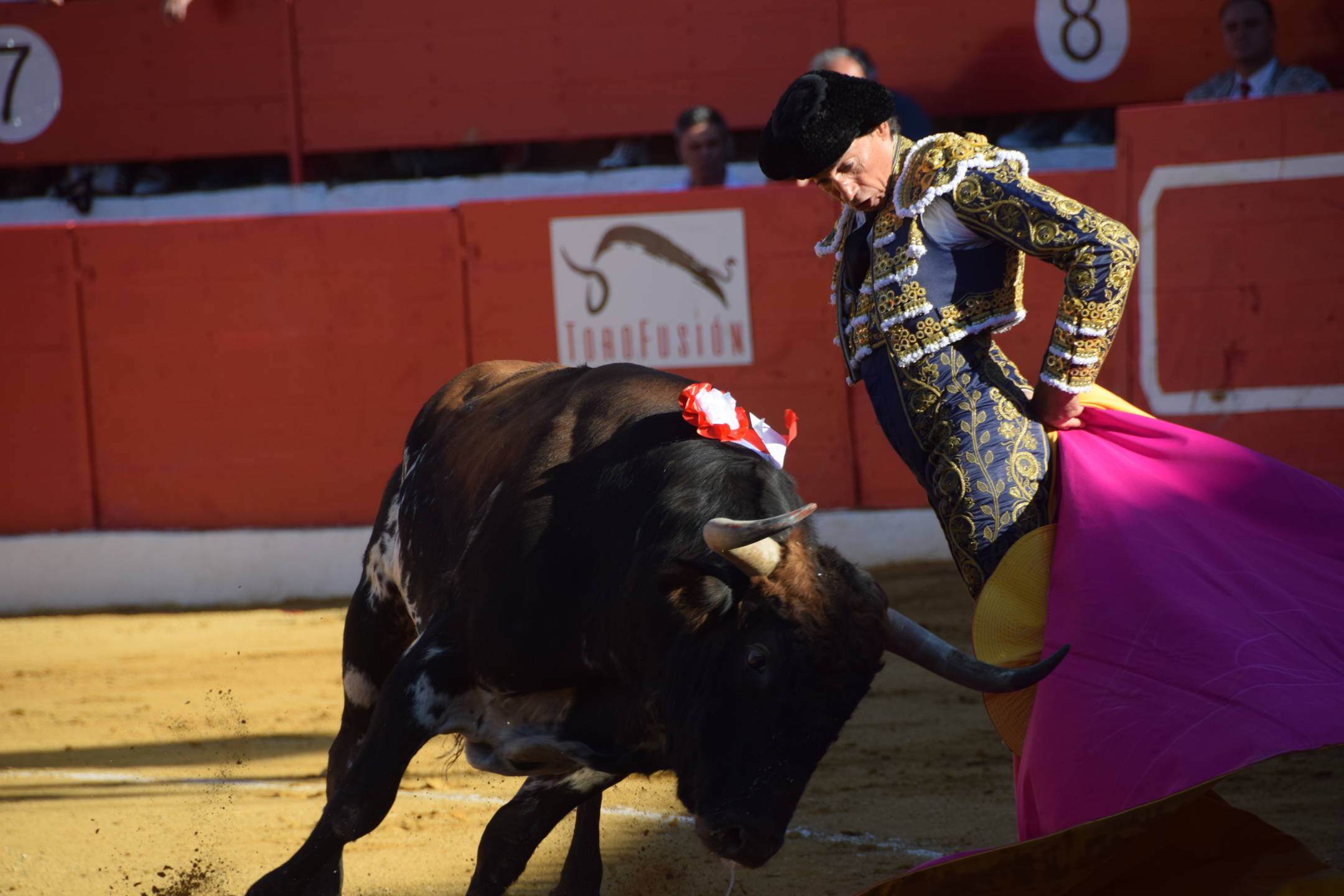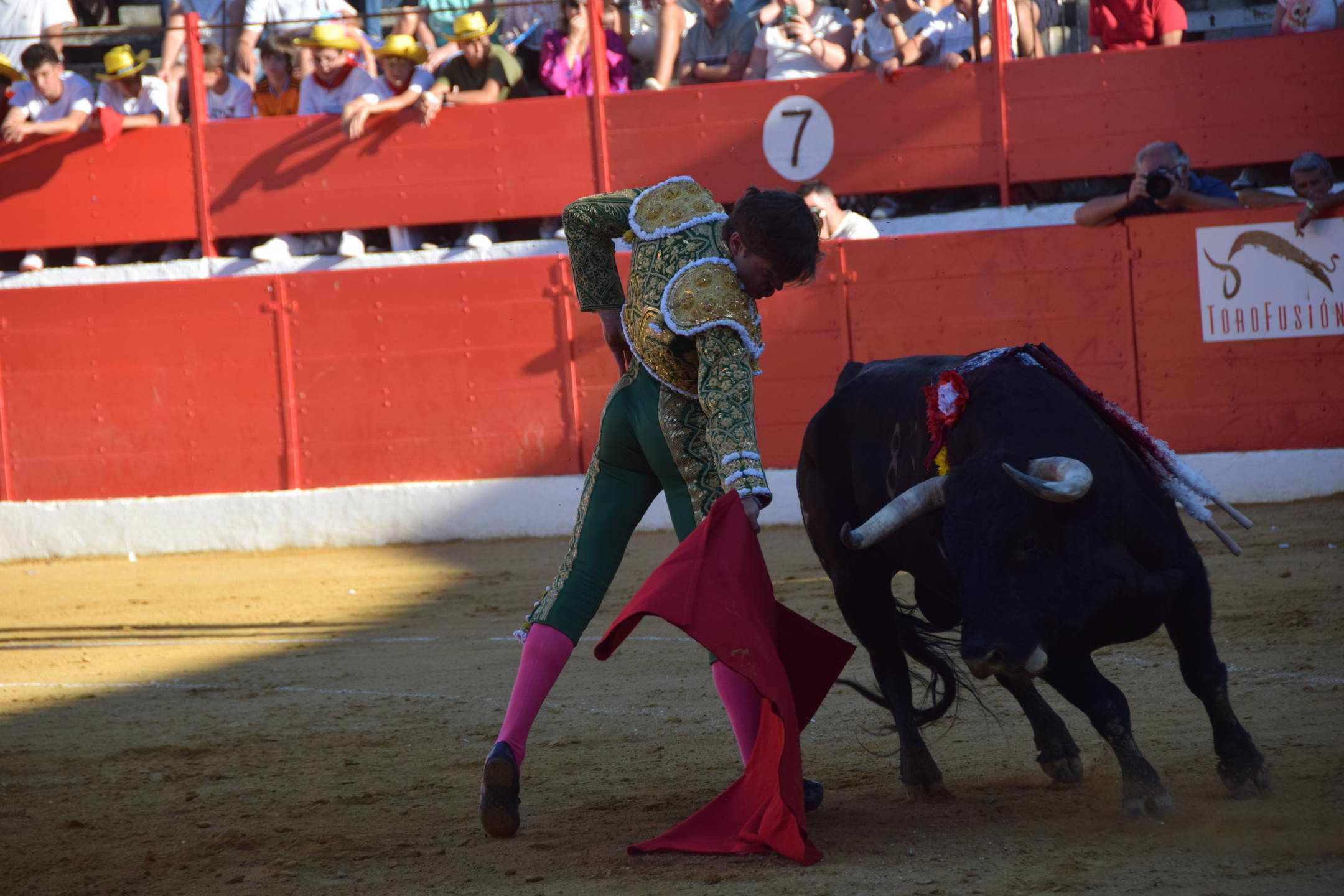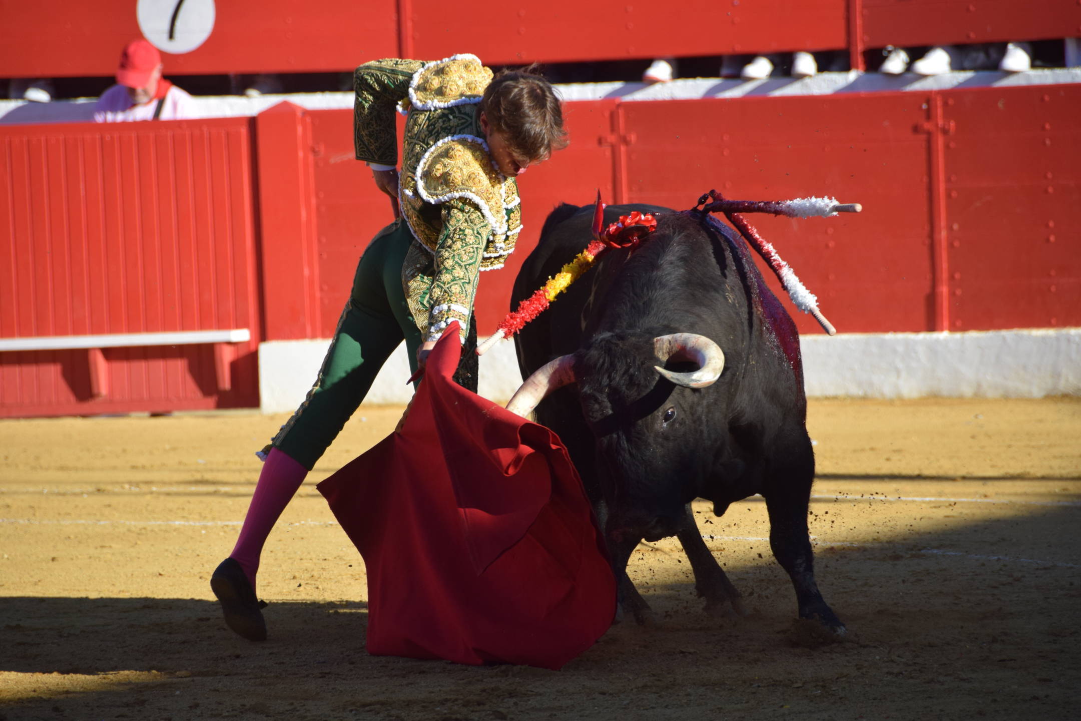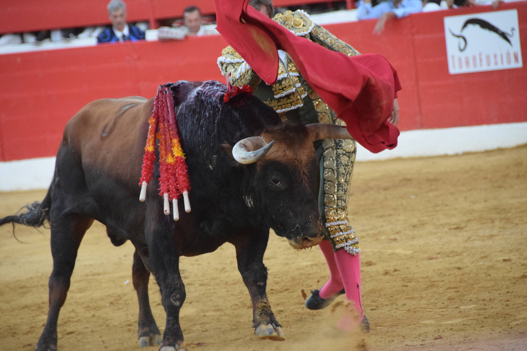 Juan Leal, el triunfador de la tarde, dereorojó al segundo de la tarde gracias a una espectacular estocada en la que se montó sobre el toro tras una faena que fue de menos a más, aunque posiblemente llegando a demasiado.