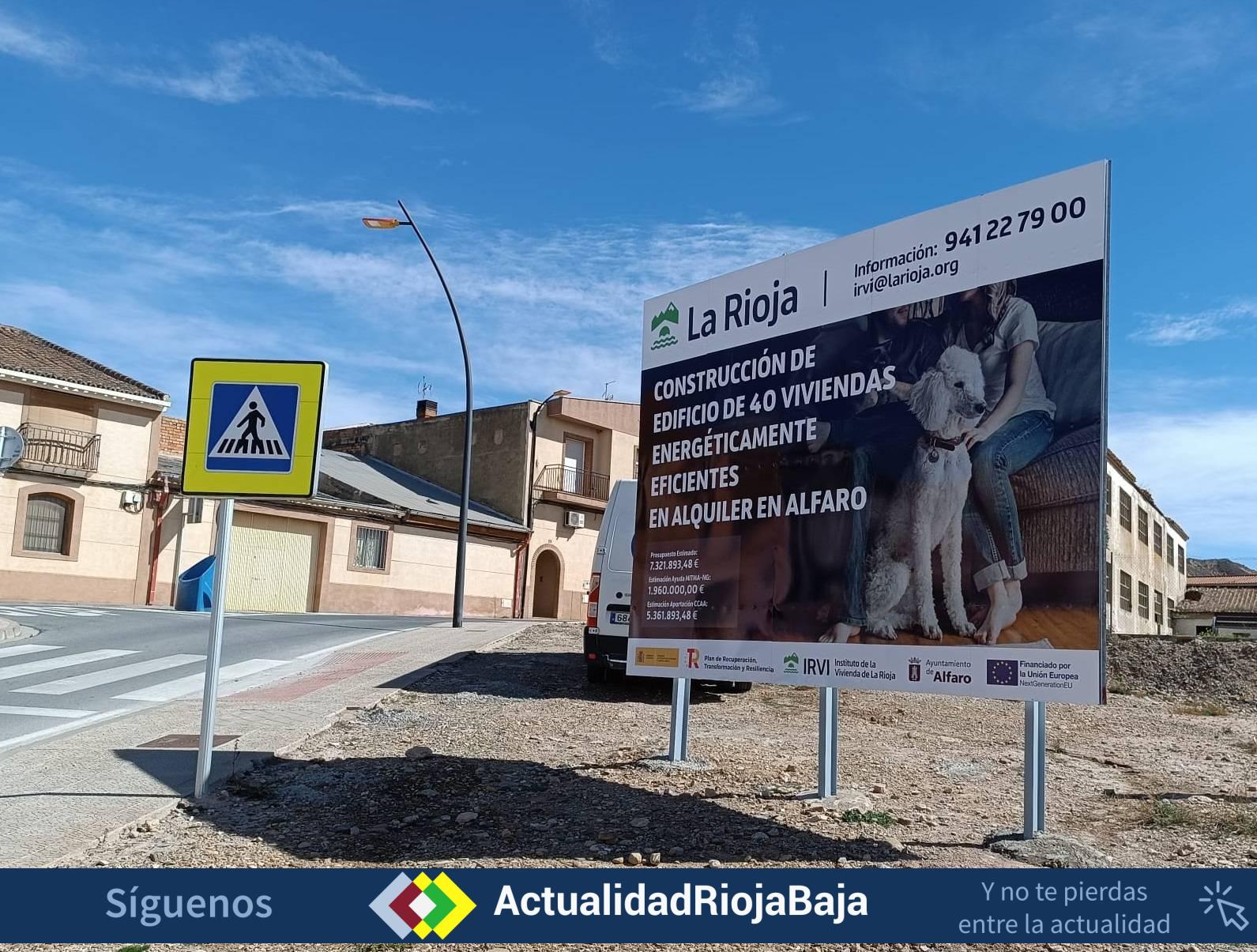 La Consejería de Política Local, Infraestructuras y Lucha contra la Despoblación, a través del IRVI, ha licitado la contratación del servicio de redacción y dirección del proyecto para la construcción de cuarenta viviendas públicas en Alfaro. Estas viviendas, que serán eficientemente energéticas, se destinarán al alquiler asequible.