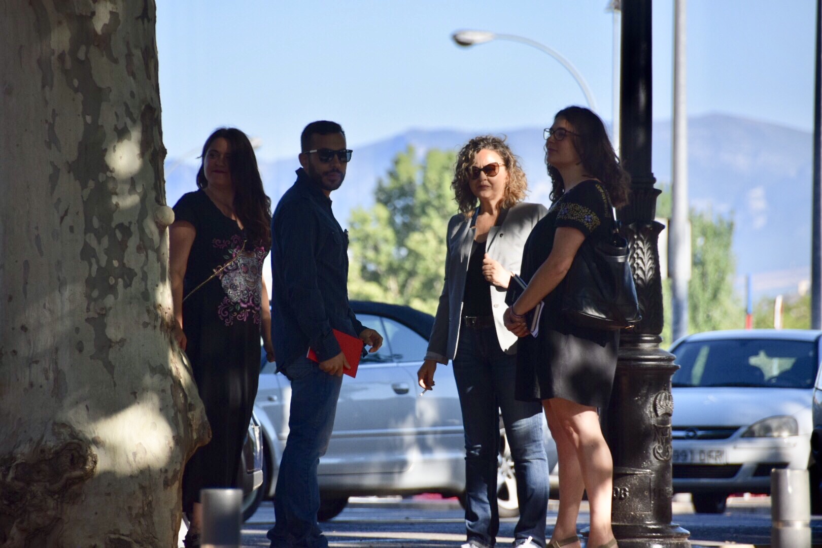 Previamente a la entrada al Parlamento, tres, y no dos, eran los acompañantes de Romero que se refugiaban con ella bajo un árbol del aparcamiento haciendo hora y ultimando detalles.
