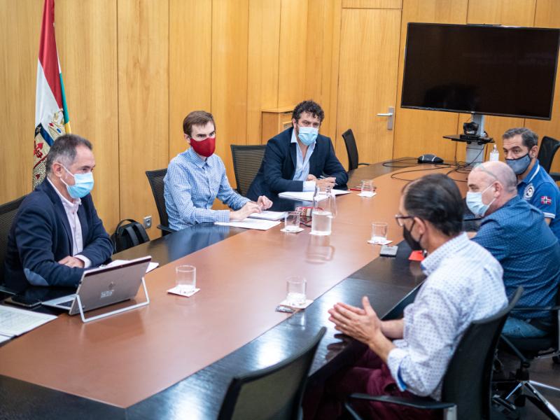 El Gobierno de La Rioja ha mantenido hoy una reunión con representantes de los clubes de fútbol que compiten actualmente en la Primera RFEF para explicarles los planes de las autoridades sanitarias autonómicas para los aforos de esta temporada 2021-22 y otras medidas sanitarias a raíz de la pandemia del COVID-19. En el encuentro, el director general de Salud Pública, Consumo y Cuidados, Pello Latasa, el director general de Deportes, Eloy Madorrán, y el subdirector de Salud Pública, Rubén Vinagre, han tratado las nuevas medidas y recomendaciones aplicadas a eventos deportivos, entre otros asuntos, con el vicepresidente de la Unión Deportiva Logroñés, Juanjo Guerreros, el presidente de la Sociedad Deportiva Logroñés, Eduardo Guerra, y el presidente del Club Deportivo Calahorra, Tomás Lorente.