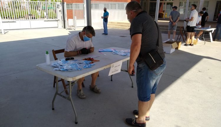 La Escuela de fútbol de Arnedo entregó ayer las mascarillas higiénicas reutilizables, personalizadas con el logo de la escuela, a todos los niños y niñas de la misma.