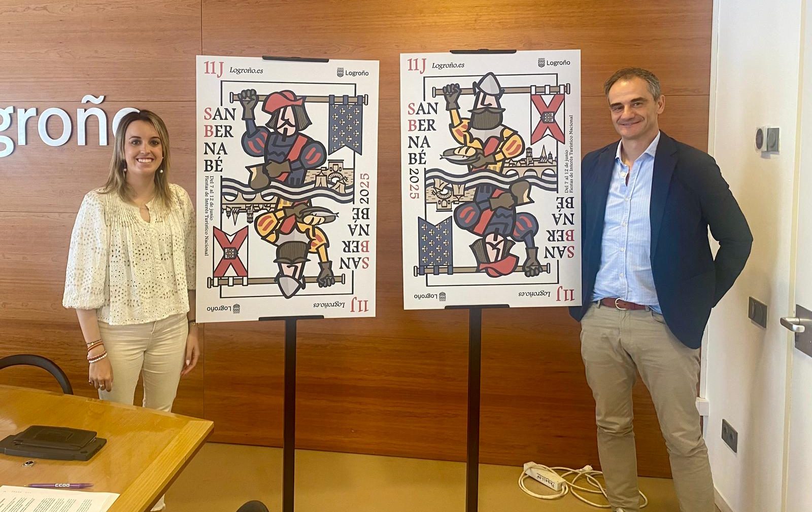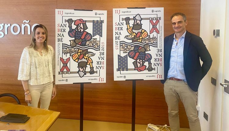 El cartel anunciador de San Bernabé 2025 ha sido creado por Pablo Sobrino, miembro de la Unidad de Publicaciones del Ayuntamiento. Su diseño, en forma de carta de naipe reversible, representa a los dos bandos del asedio separados por el Ebro y simboliza los elementos centrales de la fiesta: el pan, el pez, el vino y las banderas.