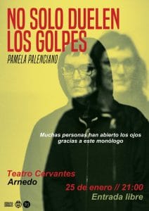Como colofón a esta semana plagada de noticias, bulos, amenazas a profesionales educadoras, chistes en las redes sociales al respecto de un «pin»; el sábado pasado tuvimos el privilegio de compartir en el teatro Cervantes de Arnedo la nueva puesta en escena del monólogo de Pamela Palenciano «No solo duelen los golpes». Una nueva versión dirigida por Darío Valtancoli.