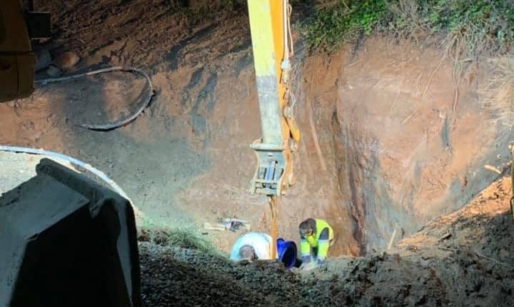 Durante toda la noche, los operarios de la empresa de agua estuvieron trabajando para poder darle una solución lo más rápida posible.