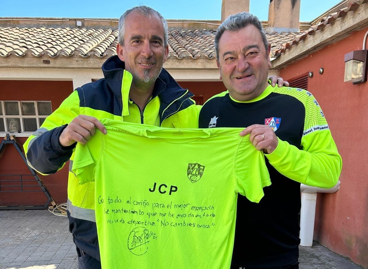 También ha querido tener un recuerdo con uno de los jugadores que ha ejercido esta temporada de capitán y que ha terminado siendo el máximo artillero rojillo. “Las horas que le estuve comiendo la cabeza para que viniera a Ekiza, ¡no te puedes ni imaginar! Es un pintor de acuarela, pero es un gran jugador que me lo llevaría a cualquier equipo”