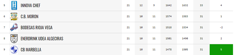 Además, hay que contar con que los marbelleses aún cuentan con opciones de clasificarse para la fase de ascenso. Están encuadrados en el cuádruple empate que engloba desde la sexta plaza hasta la novena pero no dependen de sí mismos. Deben ganar en Logroño y esperar las derrotas de CB Morón y UDEA Algeciras, algo que se antoja muy complicado pero cosas más difíciles se han visto.