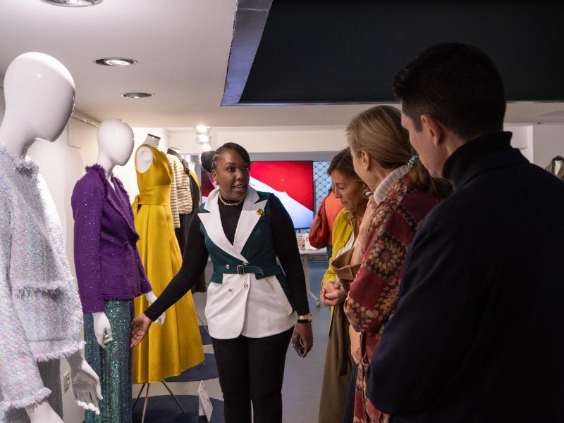 La exposición reúne piezas confeccionadas por mujeres que participan en los programas de APRAMP. Cada diseño se acompaña de relatos en primera persona que explican sus procesos de recuperación y la búsqueda de nuevas oportunidades profesionales tras salir de situaciones de explotación .