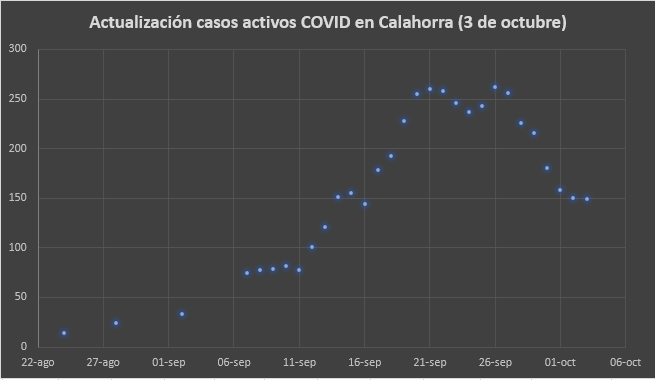 Por localidades de más de 1.000 habitantes, en esta nueva actulización se observa un descenso de casos activos en Nájera (-5) y de una forma más tímida en Calahorra (-1) y Alfaro (-1).