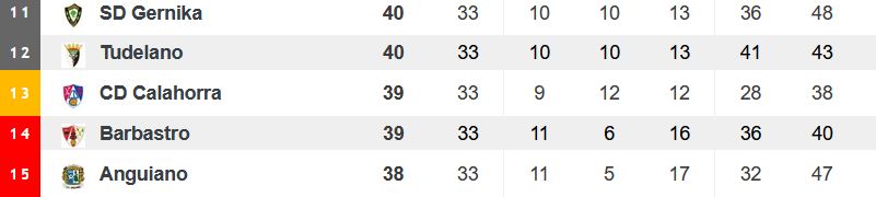 Y es que, en el caso de que se produjera un triple empate con Gernika y Tudelano (pasaría por una aderrota de Tudelano y de Gernika), los rojillos tendrían el gol average perdido con ambos equipos (el Gernika le gana el average al Tudelano). Además, en ese supuesto el Anguiano adelantaría a los calagurritanos.