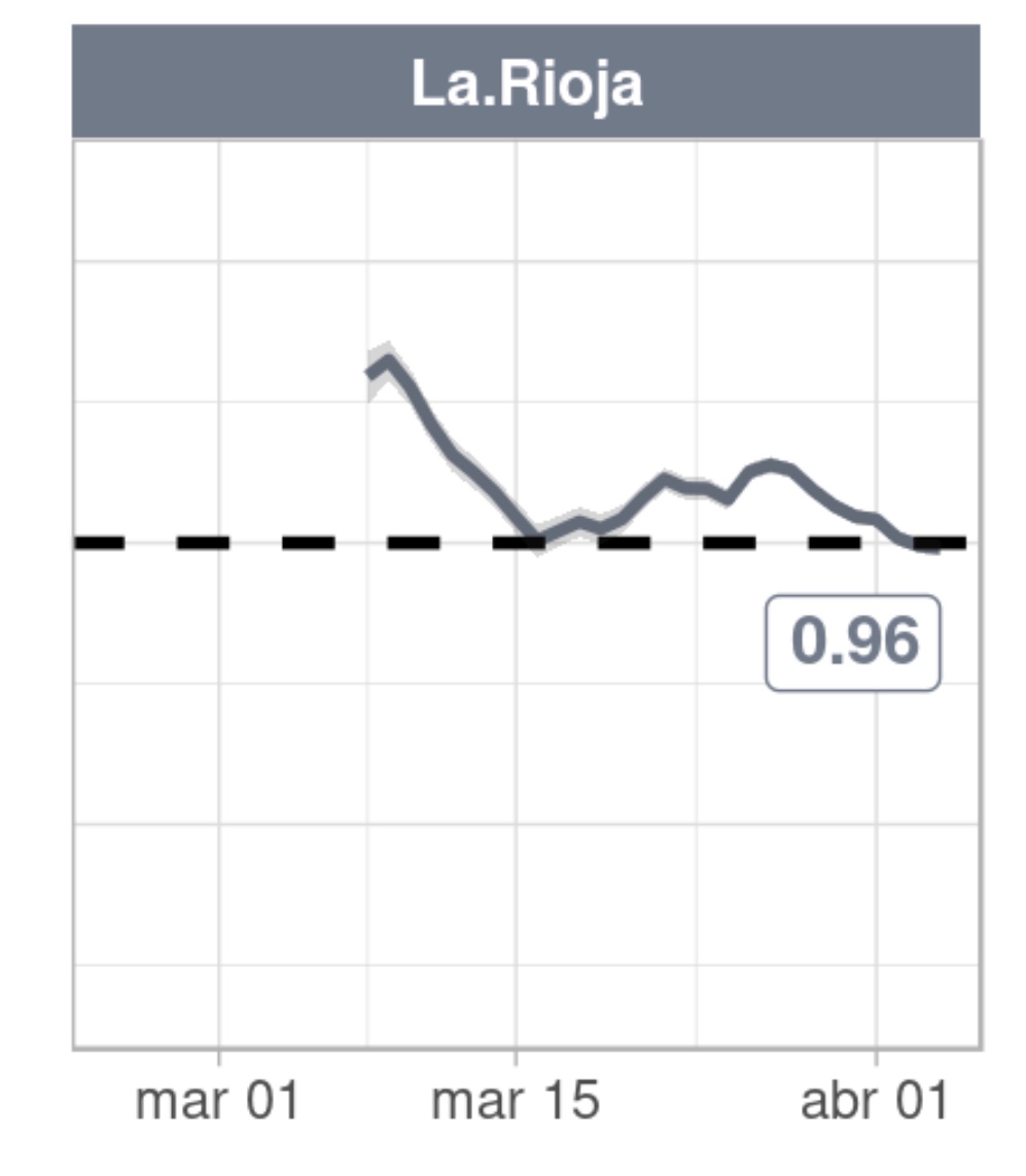 El número reproductivo básico (R0), es decir, el promedio de casos secundarios de la enfermedad causados por un caso primario; se situaba ayer por primera vez en La Rioja por debajo de 1 (0’98) según el centro nacional de epidemiología del instituto de salud Carlos III.