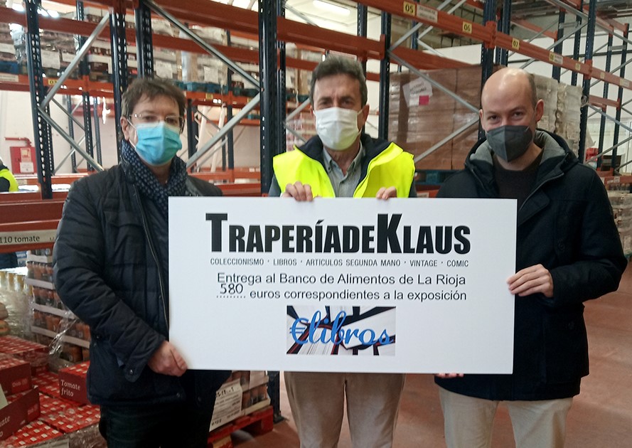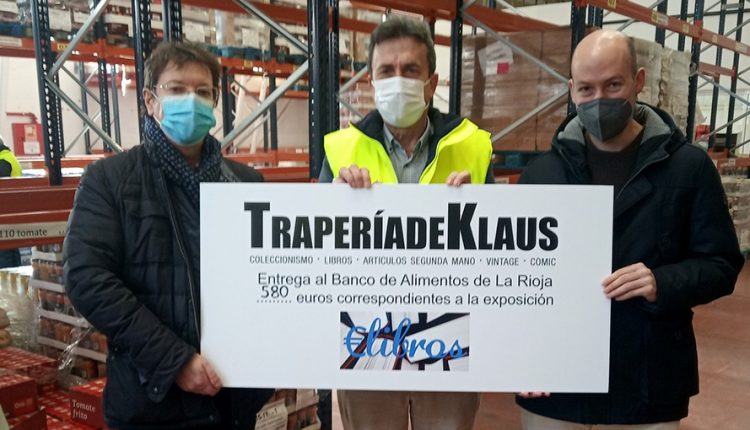 TraperíadeKlaus, la tienda logroñesa del coleccionismo, libros, artículos de segunda mano, vintage y cómic, que tuvo abierta en la calle Somosierra 5 de Logroño, un local dedicado enteramente a la II exposición €libros, en la que pusieron a la venta 3.000 libros, discos y CD, todos al precio de 1 euro, con un precio de entrada de 1 euro que daba derecho a adquirir 1 libro, disco o CD, ha hecho entrega al Banco de Alimentos de La Rioja 580 euros como resultado de esta actividad que unía cultura y solidaridad.
