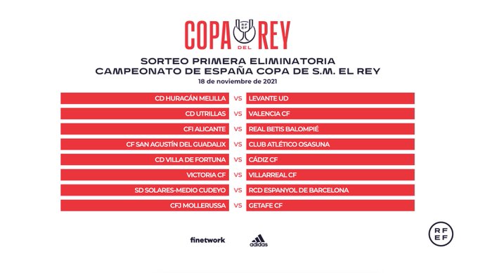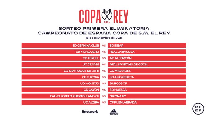 Esta primera eliminatoria se disputará el 30 de noviembre y 1 y 2 de diciembre. Los equipos que resulten vencedores avanzarán a la siguiente ronda de la Copa SM el Rey.