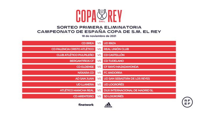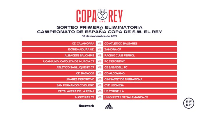 En esta primera eliminatoria, los diez equipos vencedores de la eliminatoria previa, que a punto estuvo de superar el CD Aldeano, se enfrentará a un equipo de Primera División en casa.