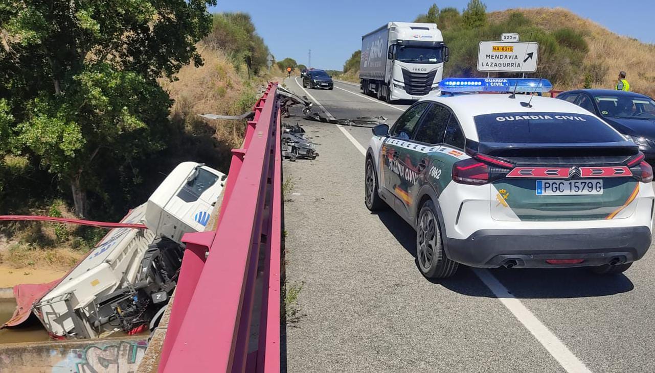 La Agrupación de Tráfico de la Guardia Civil de Navarra ha regulado el tráfico en el punto, habilitando paso alternativo y se ha hecho cargo de la instrucción de las diligencias para el esclarecimiento de las causas del siniestro.