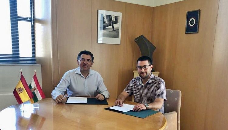 El consejero de Fomento y Política Territorial, Carlos Cuevas, y el alcalde de Alcanadre, Pablo Arana, han firmado un convenio de cooperación para financiar las obras de reurbanización de la calle San Isidro con objeto de mejorar los servicios a los vecinos.