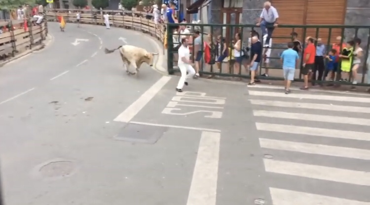 A pesar de no existir herida por asta de toro, la fuerte embestida, coml puede apreciars en el video, del animal le provocó al corredor importantes heridas y una considerable hemorragia en la pierna.
