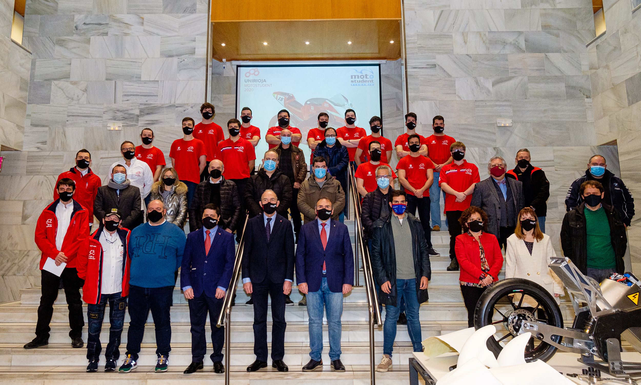 El equipo Unirioja Motostudent 2020 está formado Alberto Falces, Javier Rico, Carlos Elvira y Manuel Mendívil, profesores de la Escuela Técnica Superior de Ingeniería Industrial; y por los estudiantes Julio Sacristán Olarte, Juan Manuel Valoria, Sergio Peciña Marqueta, Andrés Maurel Mendizábal, Gabriel Ruiz Sáenz, Carlos Sanz Villaverde, Diego Rioja Vitoria, Miguel Herce Orio, Javier Rodríguez Elías, Juan Palomino Montiel, Ramón López Lorente, Miguel Ángel Ezquerro Ezquerro, Adrián Calleja Vázquez y Alex Inza Gubía.