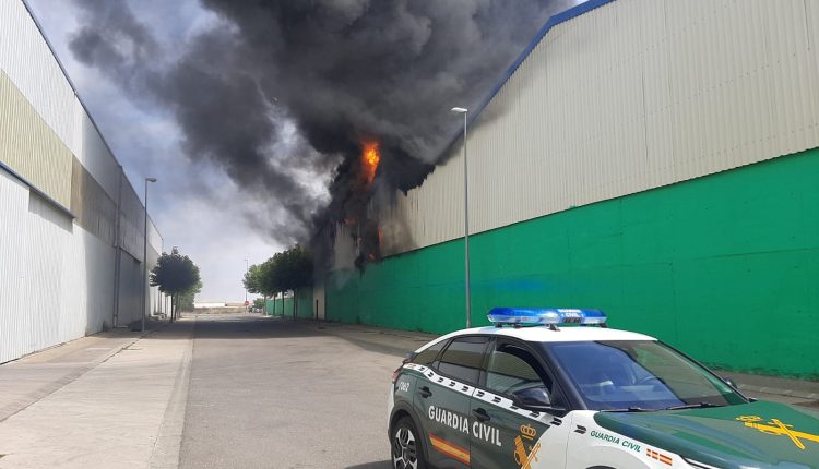 La Central Operativa de Servicio de la Guardia Civil (COS) está realizando un cinturón de seguridad en la zona para el tránsito de personas y para la circulación de vehículos debido al humo que desprende el incendio. También han procedido al desalojo de los trabajadores de tres naves colindantes.
